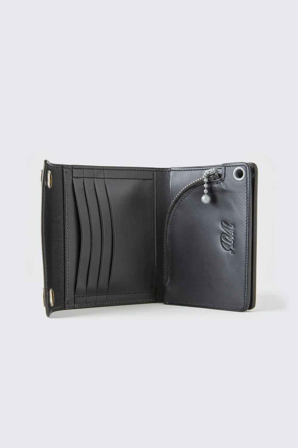 THE BILL COMPARTMENT HAS LEATHER RUNNING.